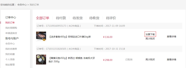 订单完成后,用户能够登录莫塞尔商城的个人账户,在“我的订单”页面中的订单列表页,找到订单操作栏里的电子发票。