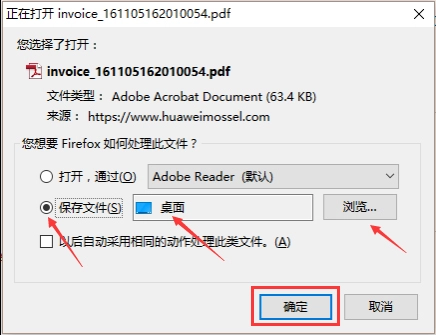 2、用户选定保存文件的名称与路径,点击确定,即可完成电子发票的保存。