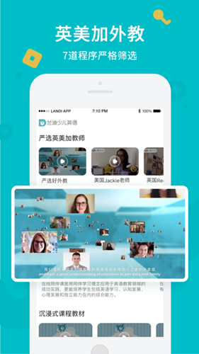 兰迪少儿英语是一款非常不错的英语学习软件,所有外教都来自以英语为母语的英美国家,需具备教育行业相关经验,必须持有TESOL/TEFL或其他相关证书,可以陪孩子练就纯正的英文发音,真正像母语一样学英语,为用户带来了不错的学习体验。