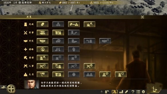 5.所谓“志”就是这个势力的发展目标,譬如“领地保全”,就意味着这个势力不求争权夺地,但求安稳度日,在一个时期内达成“志”,就可以获得相应奖励。当进入到下一个时期,“志”会发生改变,玩家也要因应“志”,来变更自己的发展方向。