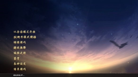 2.重新开始:玩家初次进入游戏时选择这个选项就可以开展游戏。继续游戏:读取玩家的存档继续游戏进程, 武将编辑:玩家可以自定义游戏内武将设定。鉴赏:查看全人物信息,当中包括角色的口头禅、出生与死亡年份,还有各项属性数值。
