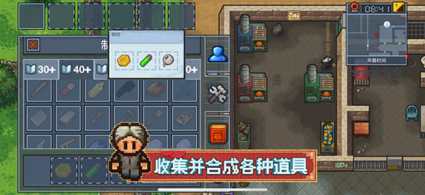 准备工作:出生后遵照监狱规则进行行动,首先收集四条被单将监狱盖住。其次将智力练习到70,耐力练习到100。随后收集工具制作[铲子]与[镐子]。按C可以快速浏览工具所需的材料。材料可以通过搜刮狱友的工作台获取,也可以与它们进行交易,用金钱进行购买。