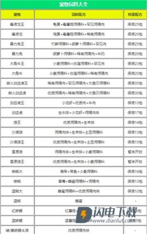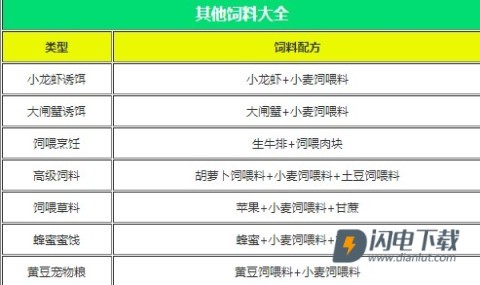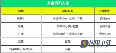 ①制作每种饲料都需要用5个普通食材合成1个。
