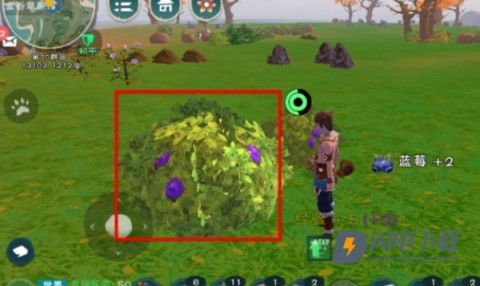 2、除草莓外,还需收集蓝莓。蓝莓丛和草莓丛颜色相近,只是蓝莓呈蓝色,它同样是常见水果。