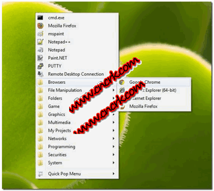 Quick Pop Menu V1.2.7 英文绿色免费版 一个非常好的快速启动工具!你可以通过自定义热键呼出快速启动菜单。程序简单高效,无须安装也不需要写注册表,解压到文件夹中即可使用。你可以把常用快捷方式都放在quick pop menu所在文件夹的shortcuts子文件夹中,支持中文文件夹名。