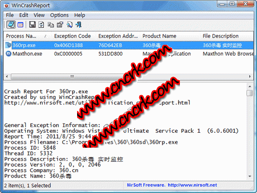 wincrashreport是一个windows内置崩溃汇报程序的替代品。一旦某个独立程序崩溃,运行wincrashreport查看一下详细报告以便找出原因,这个小工具提供的信息较为详细和直观,所以很适合调试时使用。