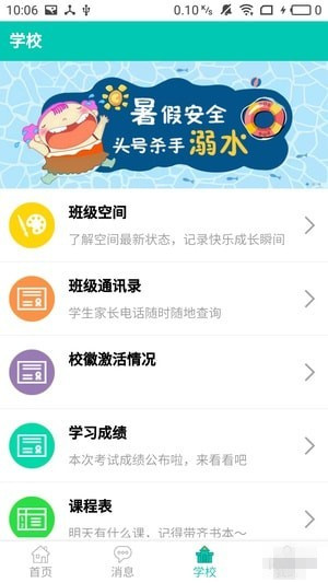 教师:点击查看学校模块的【成绩】,老师可以点击【成绩详情】,查看每个学生的成绩,可以通过电脑平台批量上传成绩。