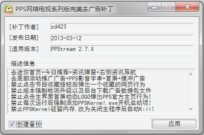 PPS网络电视去广告补丁通用版0914绿色版 PPS网络电视是全球第一家集P2P直播点播于一身的网络电视软件。PPS网络电视播放流畅、完全免费,PPS网络电视是网民喜爱的装机必备软件。