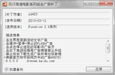 风行网络电影去广告补丁通用版 0312 绿色版 风行高清电影去广告补丁通用版是一个风行2.x系列的通用去广告补丁。