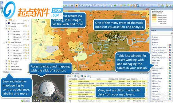 MapInfo Pro 16是美国MapInfo最新开发的桌面地理信息系统开发平台,它依据地图及其应用的概念、采用办公自动化的操作、集成多种数据库数据、融合计算机地图方法、使用地理数据库技术、加入了地理信息系统分析功能,形成了极具实用价值的、可以为各行各业所用的大众化小型软件系统。MapInfo Pro 16具备测量分析、缓冲区分析、地图代数、多边形操作、数字高程模型(DEM)分析等基本功能,能完成图形、界面、查询、分析等方面的各种要求,为资源管理、区域规划、国土监测、辅助决策等提供解决方案。另外,MapInfo Pro 16在易用性具有非常大的优势,天支持几乎所有的主流数据格式,包括许多常见的PC文件格式(如Microsoft Excel、Access、DBF和CSV文件),关系和空间数据库格式(Oracle、Microsoft SQL Sever、PostGis、SQLite和ODBC兼容数据库),以及空间数据格式(AutoCAD DXF/DWG、SHP、DGN等等),非常适用于军队管理与指挥、市场营销、城市规划、市政管理、公安交通、邮电通讯、石油地质、土地资源、人口管理、金融保险等各个应用领域。