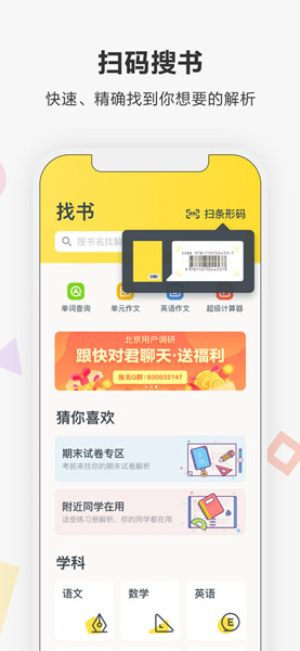 新增1.46万本新学期作业解析,持续为你更新书籍库1. 扫码搜书优化,进一步提升找书体验