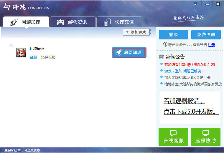 在充值成功之后,即可完成账号激活,通过添加游戏之后,对游戏进行加速。