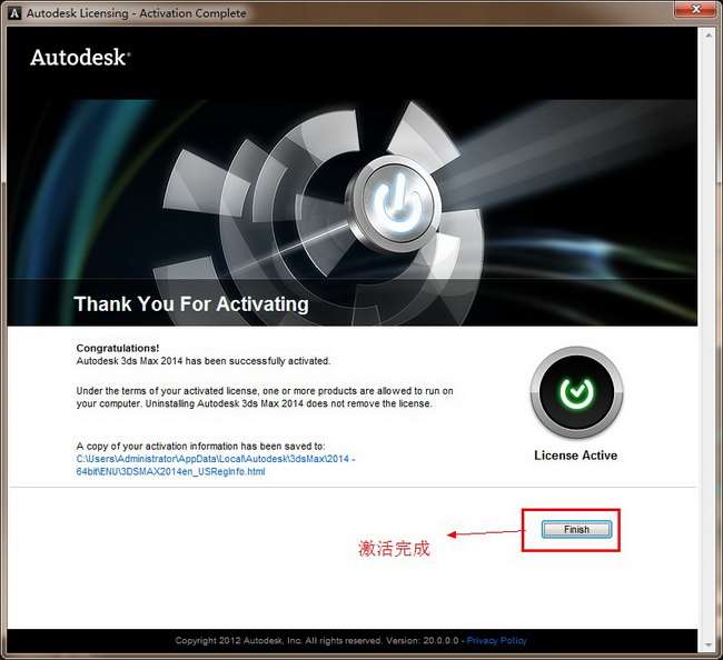 第二十一 步:3dmax2014 64位中文版成功安装激活完成