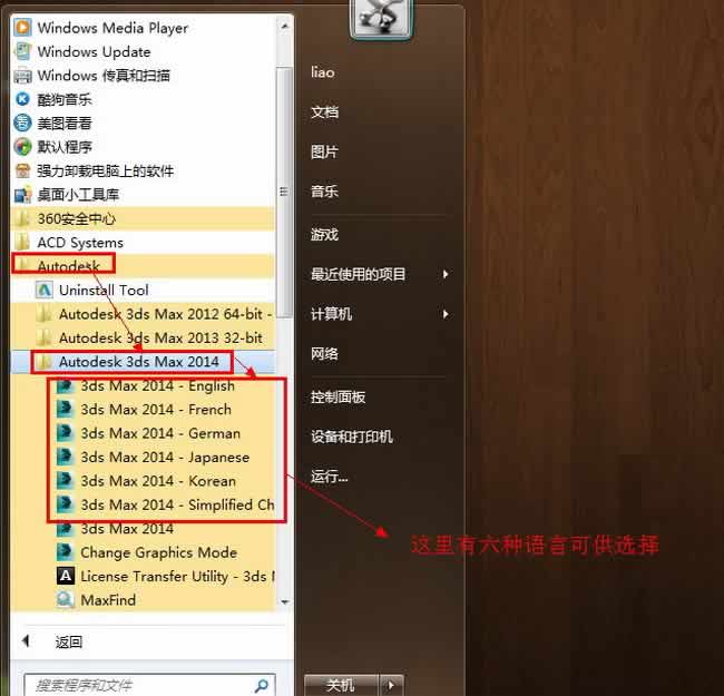 从3dsmax2013开始,max就有6种语言可供大家选择运行,具体方法是点击开始-所有程序-Autodesk-Autodesk 3ds max 2014 64bit-languages。(这里面有6种语言,你可以根据自己需要选择自己喜欢的语言运行。)