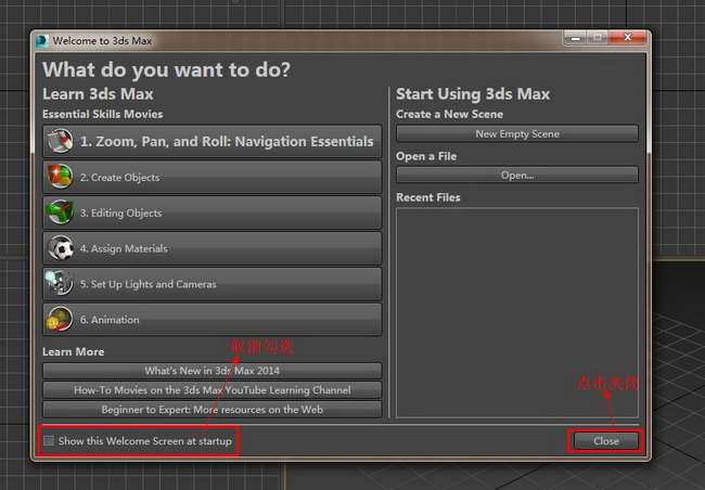 3dmax2014 64位中文版安装完成后,桌面会生成启动图标,双击运行。 如图。
