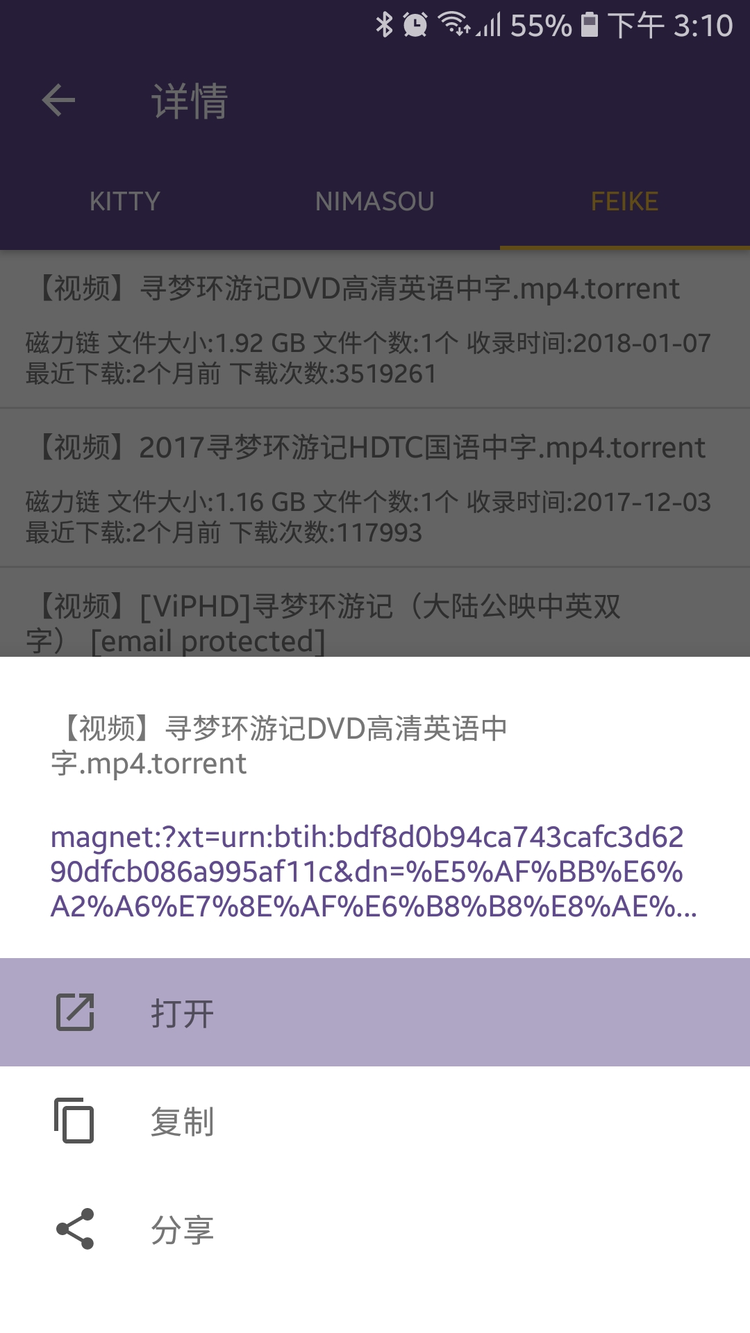 点击打开(磁力链接),这时候迅雷应该会被调起来。然后下载就全靠迅雷了。