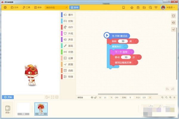 使用编程猫制作一个漂亮的花朵?1.进入编程猫软件,找到编程猫编辑器,如图所示,点击编辑器就进入编程界面。首先在事件选项卡中选择开始进入python的世界界面把它拉到编辑区域。