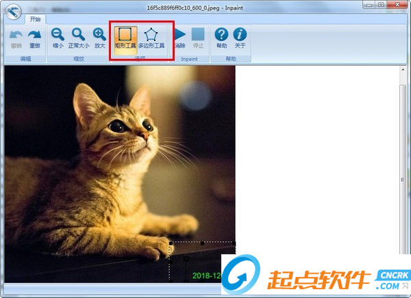 2、使用选择工具将水印部分选中,软件支持两种方式选择,矩形工具和多边形工具