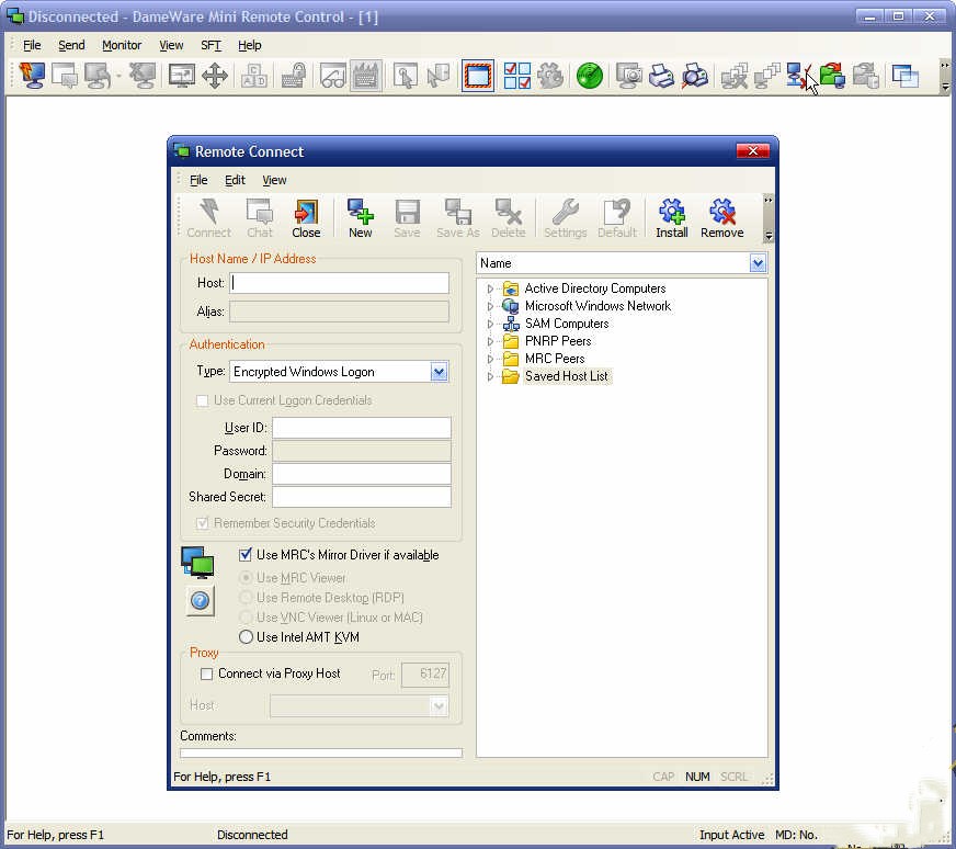 DameWare Mini Remote Control (DMRC) 程序加载了很多特性用于帮助IT专家发挥远程控制的最大功效。不像其他的远程控制软件,Mini Remote Control 客户端不会替换任何现存的操作系统文件,这样就不需要在连接的时候重启远程机器了。通过仅仅使用 Microsfot Windows API 来让本地和远程机器互动,Mini Remote Control 被认为是市场上最轻量级的独立远程控制应用程序。因此被叫做“Mini”。