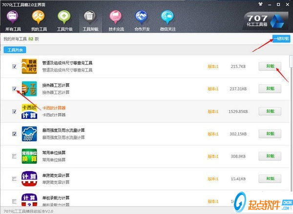 6、可以卸载单个已下载工具,也可以勾选工具前面方框点击一键卸载完成批量卸载。