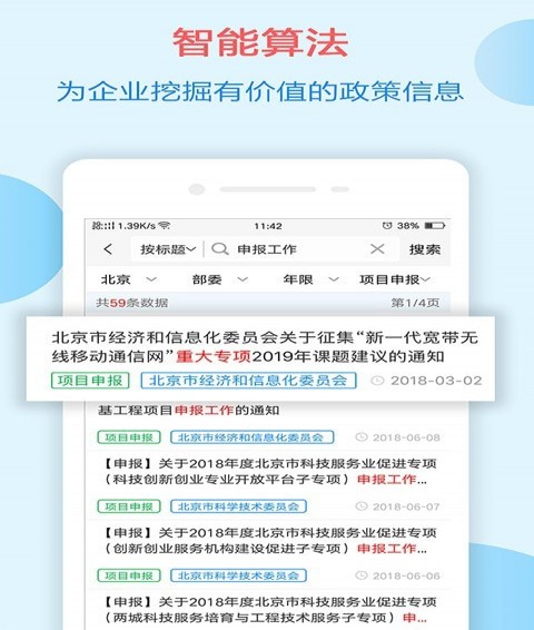 【聚焦项目申报】帮助企业第一时间“及时、全面”获取政府每年数十万至数千万的政策类资金、资源。更高优先级展示项目申报信息,高效稳定。