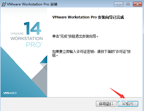 等待VMware安装完毕后,在弹出的“安装向导已完成”窗口中,点击“完成”按钮完成安装;