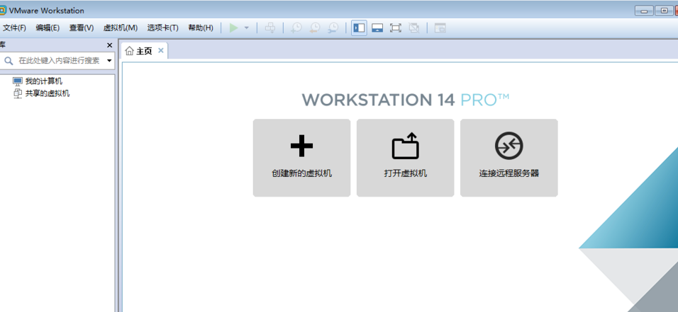 软件成功激活之后,可以见到VMware Workstation 14 Pro的主界面。在该界面中,可以点击帮助菜单中的“关于”菜单,查看软件的激活信息;