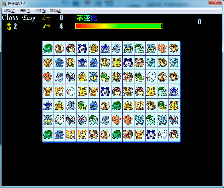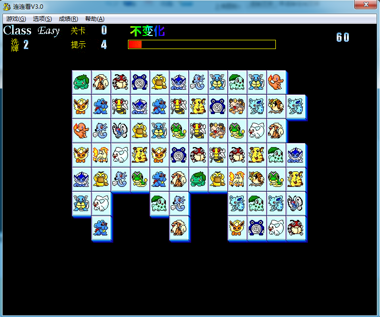4、选择一对相同的图案连线,但此连线是在避开其他图案后,呈现的路径以不超过两次转弯,如符合规定则消除此对关数而得分。
