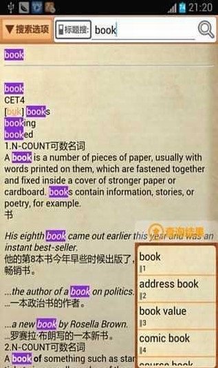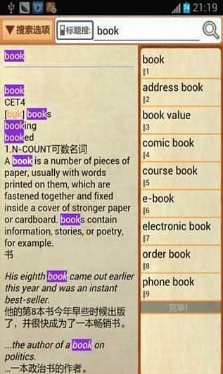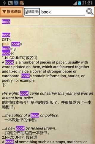 柯林斯词典是一款非常好用的英汉双解大词典,柯林斯英汉双解大词典可以准确的搜索到你想查找的单词,柯林斯词典app是最适合英语学习者的电子辞典应用程序。柯林斯高阶英汉双解词典有着60000多条收录词语,例证55000条,柯林斯词典app收录的词语、解释用语、征引的例句、说明用语都来自真实的语言,对现代英语教学与学习大有裨益。《柯林斯高阶英汉双解词典》在英语词典编纂史上颇具创新意义。它根据Collins首创的、世界规模*的英语语料库(Barlk of English)编写而成,其中收录的词语、解释用语、征引的例句、说明用语都来自真实的语言,对现代英语教学与学习大有裨益。 真实英语:收录词语60000多条,例证55000条,涵盖英国英语和美国英语。 全新的释义风格:用完整的英文自然句子解释词条,充分反映词语在典型语境中的典型意义及用法。 自然的释义风格:释义清晰流畅,简洁平易。解释任何一个词语,都如同教师在教室面授详析。