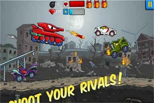 2、持续强化你的赛车,使其愈发强大。众多风格各异的赛车等待你去解锁驾驭。还有丰富多样的道具供你使用。