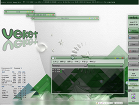 veket是一个容量很小(一般都是200M至350M之间,相对于win7几G的容量称之为很小应该没错),资源要求很低(因为使用的是以省资源闻名的 icewm窗口管理器---相对KDE和GNOME来说速度快多了,对硬件的要求也低很多,所以速度很快,同时也适合用在老旧电脑和上网本上),同时 veket也集成了常用软件,通常安装完veket系统之后即使不另外安装软件也可以完成大部分应用——包括上网浏览,看电影,听音乐,收邮件,网页编辑制作,压缩解压缩,图形图像(专业的cimp处理),打印,加密文件,办公字处理和电子表格,视频转换,看pdf及还有一个专门的看小说软件及看漫画软件和玩游戏甚至还有集成小型的编译环境等等————就是参与维护和测试veket日常所需要用到的软件都全部集成进veket系统里边去了,所以,安装完的 veket系统所集成的软件已足够满足大部分网友的日常应用需求。
