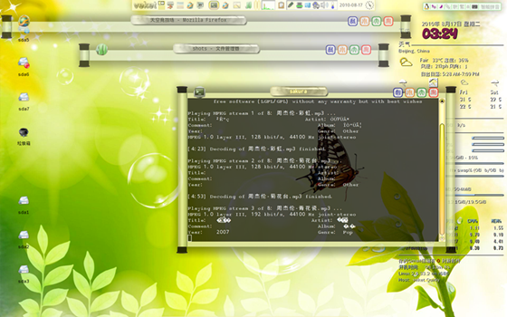 retrovol混音器、xfce混音器、flash播放器、vlc播放器、audacious音乐播放器、pburn光盘刻录、pupradio网络收音机、guvcview视频录像软件、mhwaveedit音频录制与编辑。