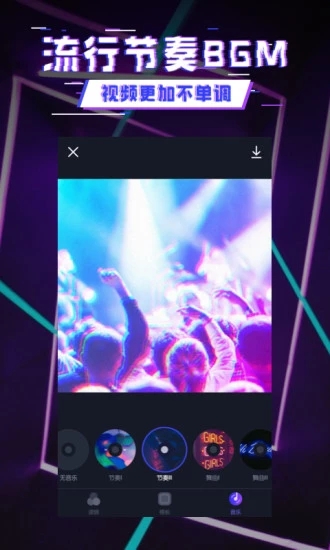 精心挑选多种律动BGM,动态效果与音乐节拍完美匹配,为视频增加节奏感,让你的小视频一点都不单调。