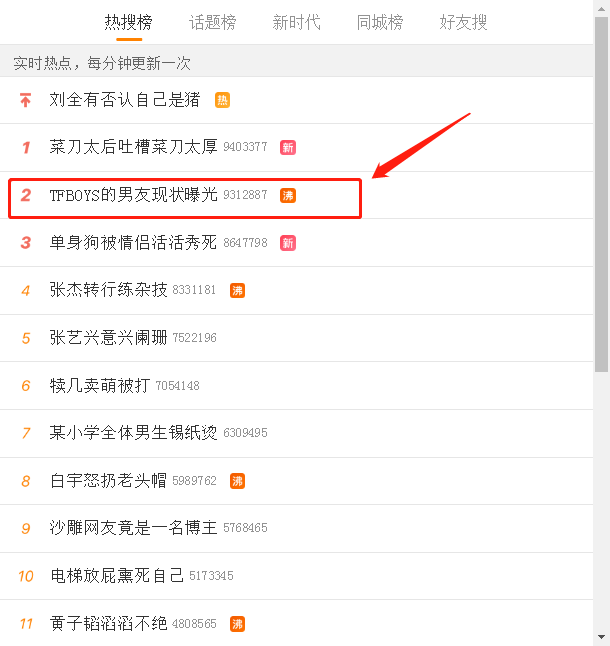 热搜标志:无、热、沸、新,可根据自己的喜好选择该条热搜的状态。