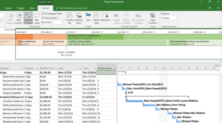 可以使用子任务和摘要任务显示阶段,轻松浏览大型项目等。