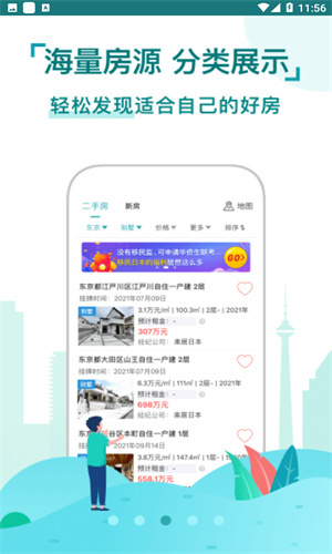 1. 每套房源均会自动标注售价,在展示日元价格的同时,会同步换算为人民币价格,让用户能直观知晓价格情况。