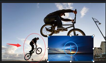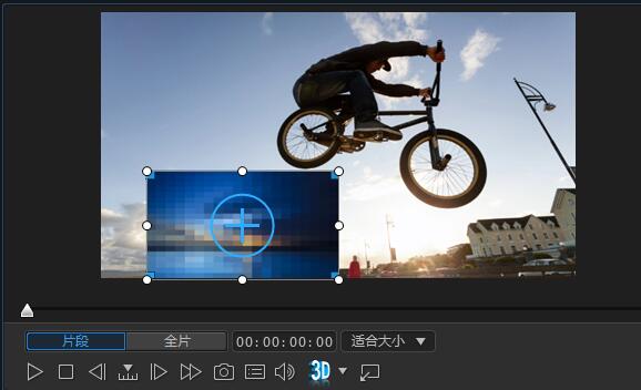 2、导入图片以后在播放窗口,调节图片大小,以恰好遮挡住水印为宜。以下面素材为例,遮挡住小的人物。如图:
