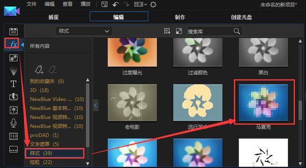 3、在效果室里面选择样式--马赛克。如图: