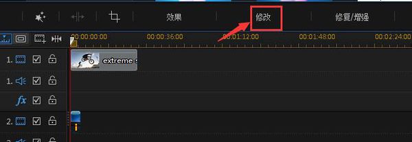 5、选中视频2轨道,点击修改。
