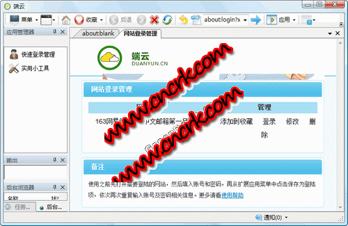 端云网站快速登陆 V1.0 简体中文绿色免费版 网站自动登陆是主要针对网站登陆设计的一个工具,无论你是想自动登陆邮箱还是管理博客或管理网站,都可以使用网站自动登陆来登陆你的网站,方便你快捷管理很多登陆性网站,可以登陆后定向跳转到指定的地址,方便您的使用。对一些简单验证码,可以自动识别直接进行登录。