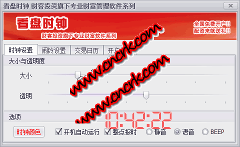 财客看盘时钟 V1.0 官方安装版 财客看盘时钟是一款漂亮豪华的桌面悬浮时钟,是骨灰级期货、权证和外汇炒单玩家必备软件。