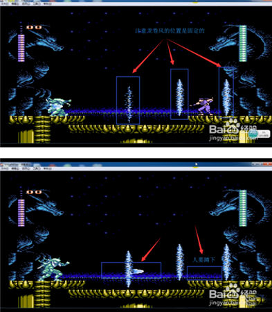 另外需要说明的就是上边的两个“龙头”,别以为你躲着他就不来攻击你,当你跑到“楼梯”下边的时候,龙头就会攻击你了,这个时候“龙卷风使者”攻击不到你的,咱也不怕他,KO了他。