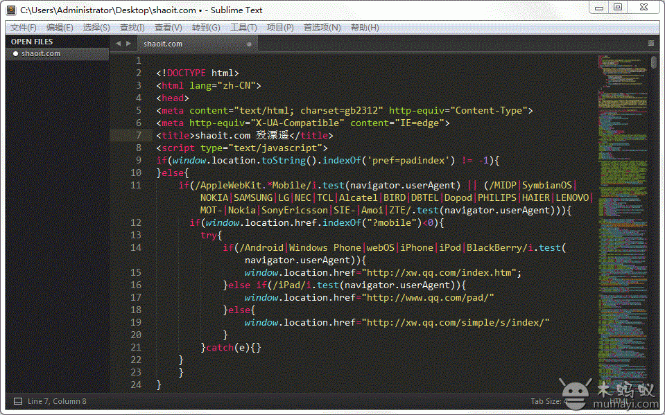 Sublime Text 是一个轻量、简洁、高效、跨平台的编辑器,方便的配色以及兼容vim快捷键等各种优点博得了很多前端开发人员的喜爱!Sublime Text 2这款程序员必备代码编辑器,几乎每位程序员提到Sublime Text 2都是赞不绝口!它体积小巧,无需安装,绿色便携;它可跨平台支持Windows/Mac/Linux;支持32与64位操作系统,它在支持语法高亮、代 码补全、代码片段(Snippet)、代码折叠、行号显示、自定义皮肤、配色方案等所有其它代码编辑器所拥有的功能的同时,又保证了其飞快的速度!还有着 自身独特的功能,比如代码地图、多种界面布局以及全屏免打扰模式等,这些优秀特性让Sublime Text 2成了所有程序员眼中的神!SublimeText2支持但不限于 C, C++, C#, CSS, D, Erlang, HTML, Groovy, Haskell, HTML, Java, JavaScript, LaTeX, Lisp, Lua, Markdown, Matlab, OCaml, Perl, PHP, Python, R, Ruby, SQL, TCL, Textile and XML 等主流编程语言的语法高亮。ST 拥有优秀的代码自动完成功能 (自动补齐括号,大括号等配对符号;自动补全已经出现的单词;自动补全函数名),非常智能;