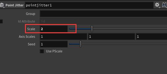 为了让scatter产生的节点位置更加的随机,对scatter节点运用一个Point Jitter节点,并设置Scale为2。