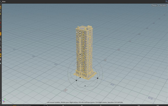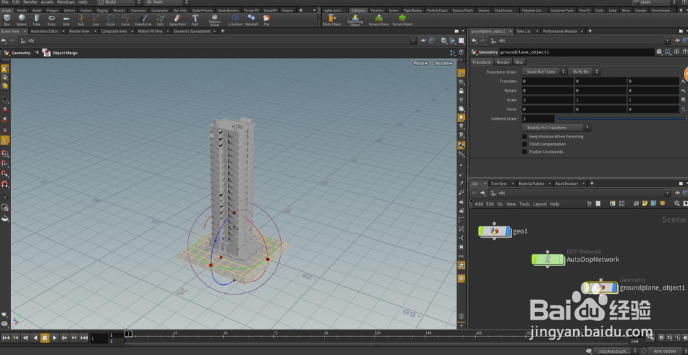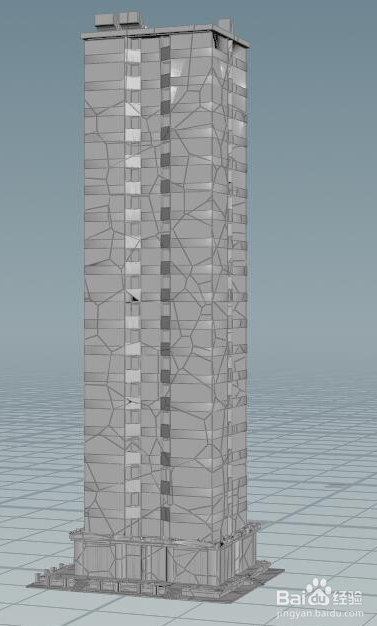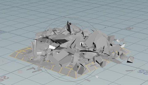 导入破碎物体,这里使用的是一栋建筑,这栋建筑是多个部件组合而成的,不是一个整体的,这样的好处是可以产生一些自然的破碎效果。