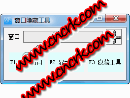 拖动十字架不放移动到要隐藏的窗口标题栏上,直到窗口文本框显示窗口标题后松开鼠标。按隐藏窗口或快捷键f1即可隐藏,f2显示,f3为隐藏本工具,再次按下又显示回来。