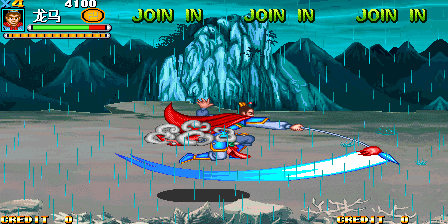 2、升龙斩:→↓↘+A 需要第二档气,(属于跳起动作可连翻腾舞和混元功),打BOSS的必背招,背后可能有漏洞,必要时可连接翻腾舞(本人打通关之后才知道升龙斩的用法),每用一次位置下移一点,最适合在角落使用。