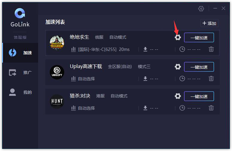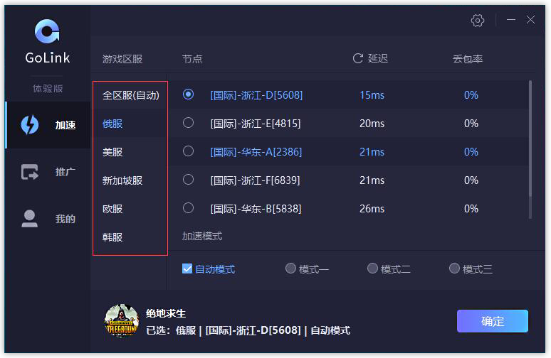 GoLink加速器如何选择区服?如何切换节点及模式?在【加速设置】里可切换节点和选择区服