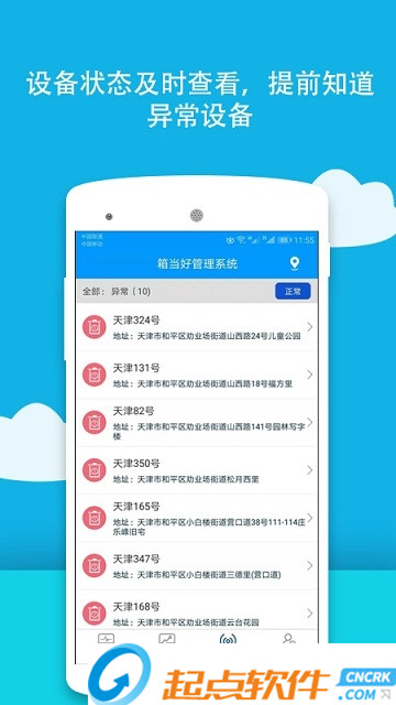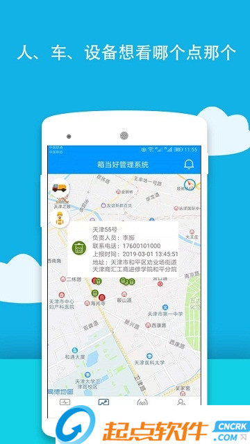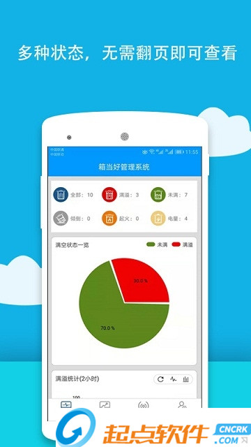 合理使用碎片时间,及时查看设备信息。设备多种数据信息,通过手机快速查看,对异常或出现问题设备及时联系周边工作人员或负责人进行解决。箱当好是一款对硬件设备的状况信息,进行实时统计,根据统计情况合理安排工作人员。您可以查看设备信息,也可查看人员当前状态(在线或离线),还可以查看清运司机在地图中的清理路线。可快速查看员工端发送的设备报修信息,根据设备报修分类进行合理安排维修。