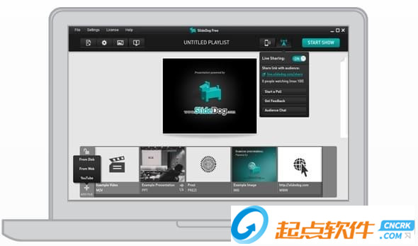 SlideDog 让您远程控制演示和播放列表从您的智能手机,平板电脑或二次计算机。你也可以与观众实时分享幻灯片。